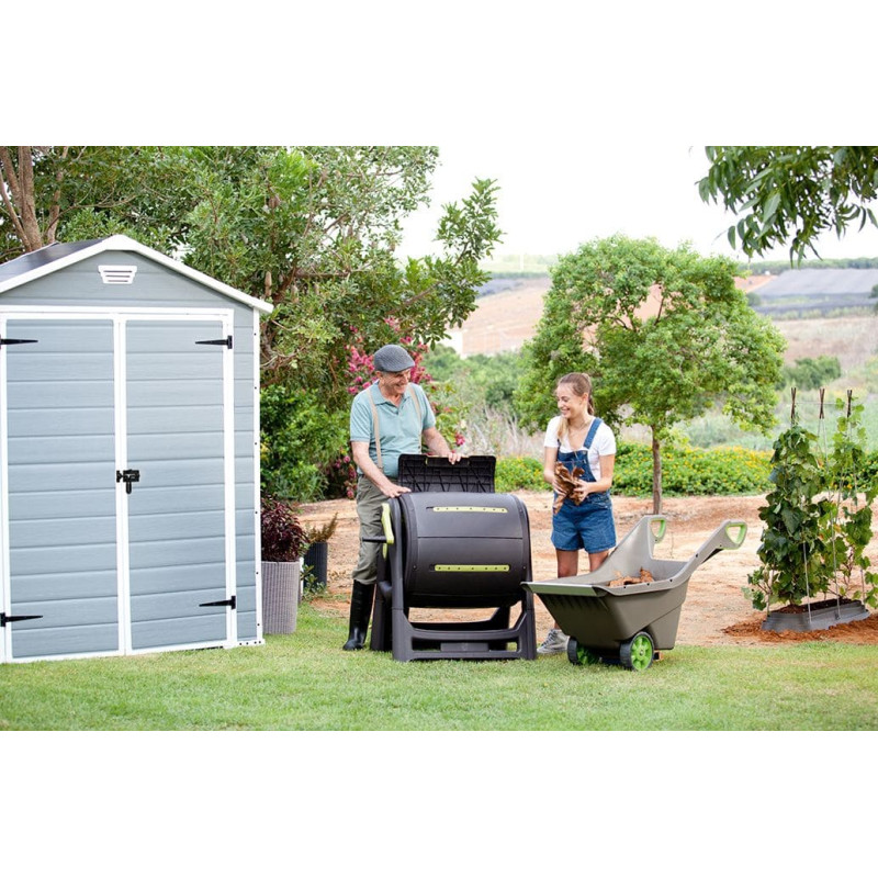 Manor 6x5 DD šķūņa izturīgais rāmis apmierinās pat visprasīgākos lietotājus. Dubultās sienas un izturīgais rāmis garantē stabilitāti daudzus gadus. Iebūvēta ventilācijas sistēma nodrošina gaisa cirkulāciju, aizsargājot interjeru no kaitīga un pārmērīga mitruma. Šķūnī var uzglabāt dažāda veida darbarīkus un dārza aprīkojumu, šūpuļtīklus, sauļošanās krēslus utt. Tam nav nepieciešama apkope, un tas nav pakļauts rūsēšanas, pārklājuma vai materiāla sabojāšanās procesiem. Piemērots visiem laika apstākļiem, izturīgs pret pret puvi, rūsu, un citiem bojājumiem. Pamatīga konstrukcija un nepārspīlēts izmērs padara uzglabāšanu ērtu. Grīdas panelis saglabā jūsu īpašumu tīru un sausu. Iebūvētais logs piešķir šķūnim dabisku gaismu, bet ventilācija palīdz saglabāt drošu vidi šķūņa iekšpusē. Viegli montējams ar mājsaimniecības instrumentiem. Šķūnis Manor 6x5 DD ir izturīga glabātuve ar divkāršu sienu konstrukciju. Tajā ir arī dubultdurvis ērtai piekļuvei, grīdas panelis, iebūvēta ventilācija drošībai, fiksēts logs dabiskai gaismai un bloķēšanas sistēma, kas nodrošina papildu drošību jūsu īpašumam. - Laika apstākļu izturīgs