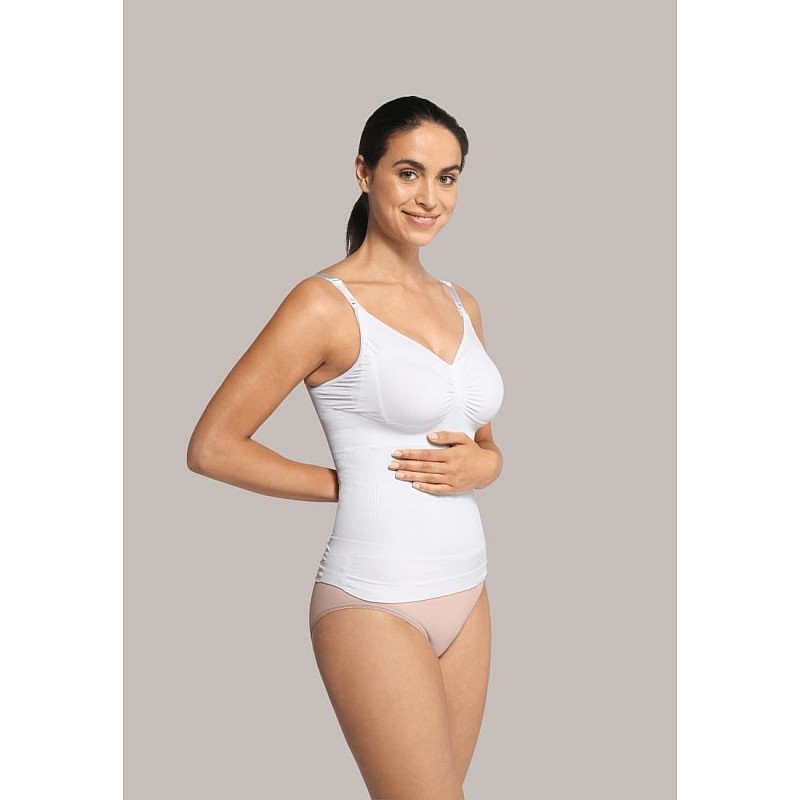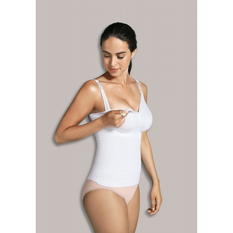 Koriģējošais krekliņš barojošajām mammiņām. Krekliņš un balstošs krūšturis vienā. Maigais audums piemērots jutīgajai ādai. Sastāvs: 91% poliamīds, 9% elastāns.