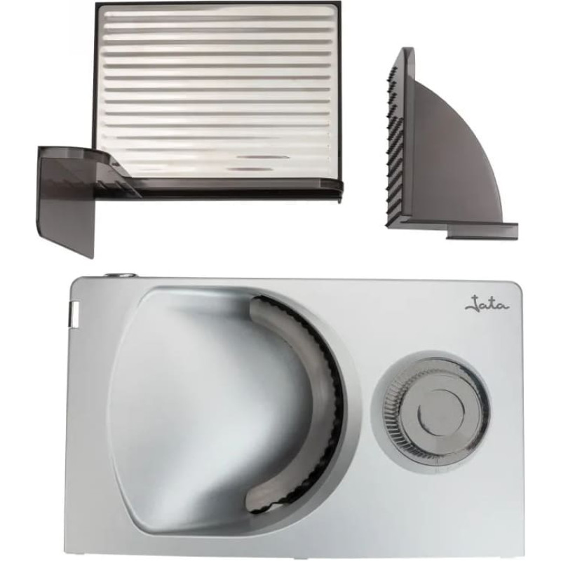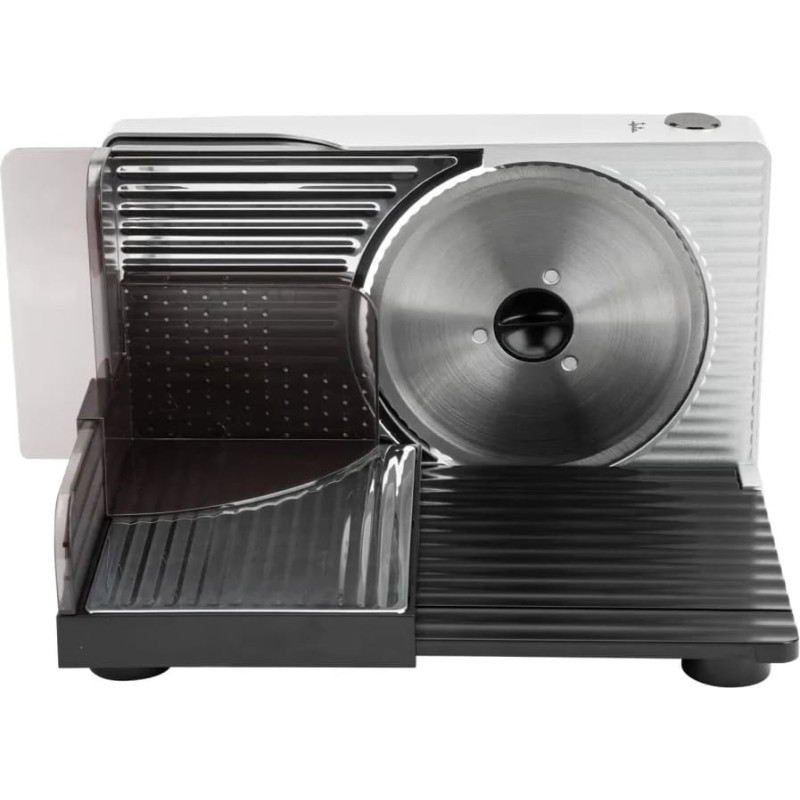 Griešanas laukums un nerūsējošā tērauda ratiņi Metalizēta iekārta 17 cm noņemams tērauda disks Drošības sistēma pret nejaušu lietošanu Precīzas griešanas regulators no 0 līdz 15 mm Saliekama pamatne Kabeļa uztīšana Neslīdoša pamatne Noņemams un viegli tīrāms Spriegums 230 V Jauda 120 W