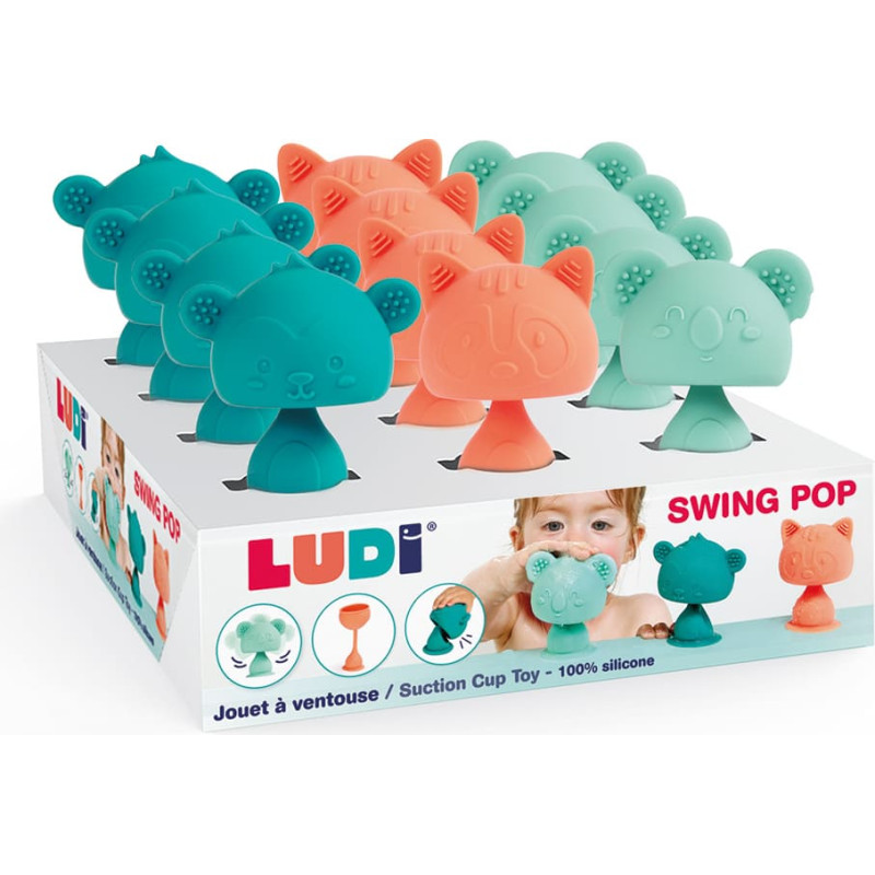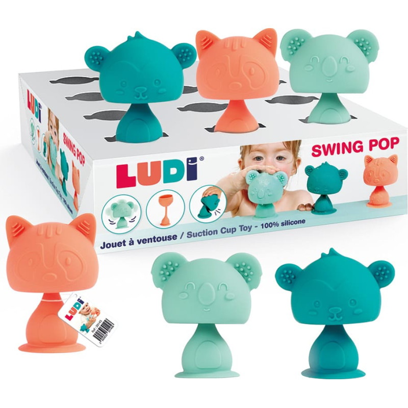 Šūpojošie, galvu kratošie jauki dzīvnieciņi-sēnes ir lieliskas košļājamās rotaļlietas. Koala, pērtiķis un jenots nodrošinās mazajam kompāniju rotaļu vai maltīšu laikā. Pateicoties piesūceknim, dzīvniekus var piestiprināt pie jebkuras līdzenas virsmas: galda, barošanas krēsla, vannas vai pat flīzēm. Ausu tekstūra ir īpaši izstrādāta, lai mazinātu zobu augšanas sāpes. Izgatavots no mīksta un izturīga silikona. Ieteicams bērniem no 10 mēnešiem. Izmērs 9 cm. Viegli notīrīt ar ziepēm un ūdeni. Rotaļlietai ir CE marķējums. Ražots Ķīnā pēc īpaša pasūtījuma no SAS JBM, Ludi, Francija.
