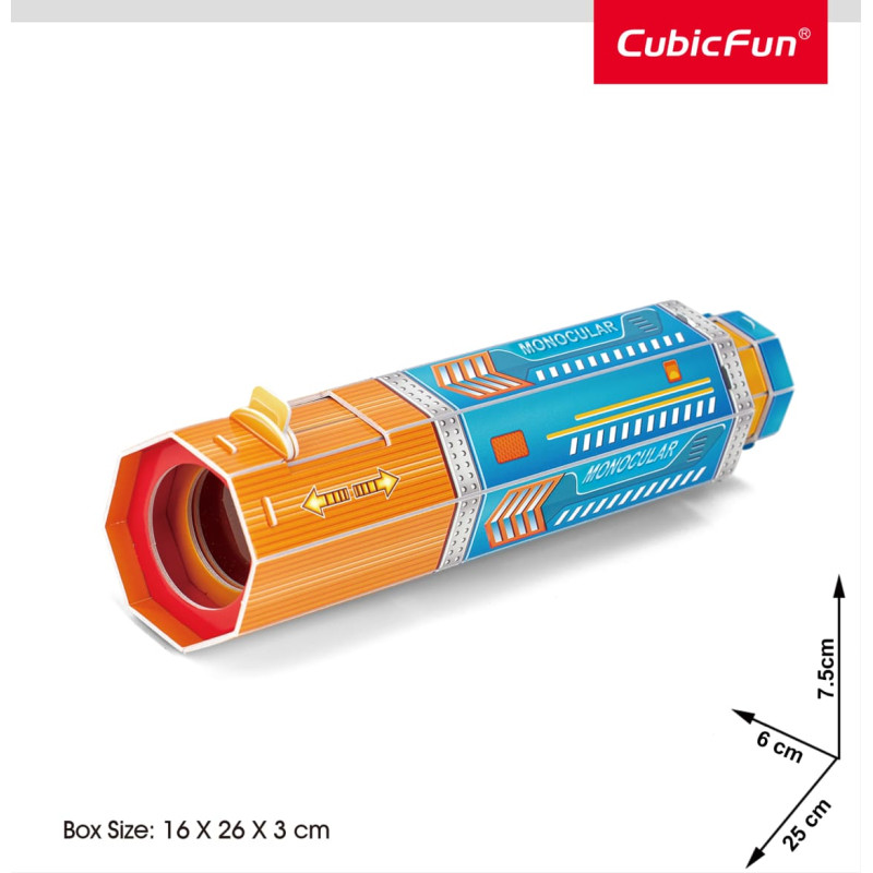 Visiem patīk salikt puzles, tas ir gan jautri, gan izglītojoši. Puzles ir lieliski piemērotas, lai tās saliktu vienatnē vai grupā. Komplektā buklets ar informāciju par konstrukciju.3D puzle no papīra un elastīgas putupolistirola. Viegli saliekama. Nav nepieciešamas šķēres un līme. Kā var pietuvināt lietas, kas atrodas tālu, lai tās kļūtu redzamas? Šeit lieti noder teleskopi. Maketa izmērs: 6 x 7,5 x 25 cm.