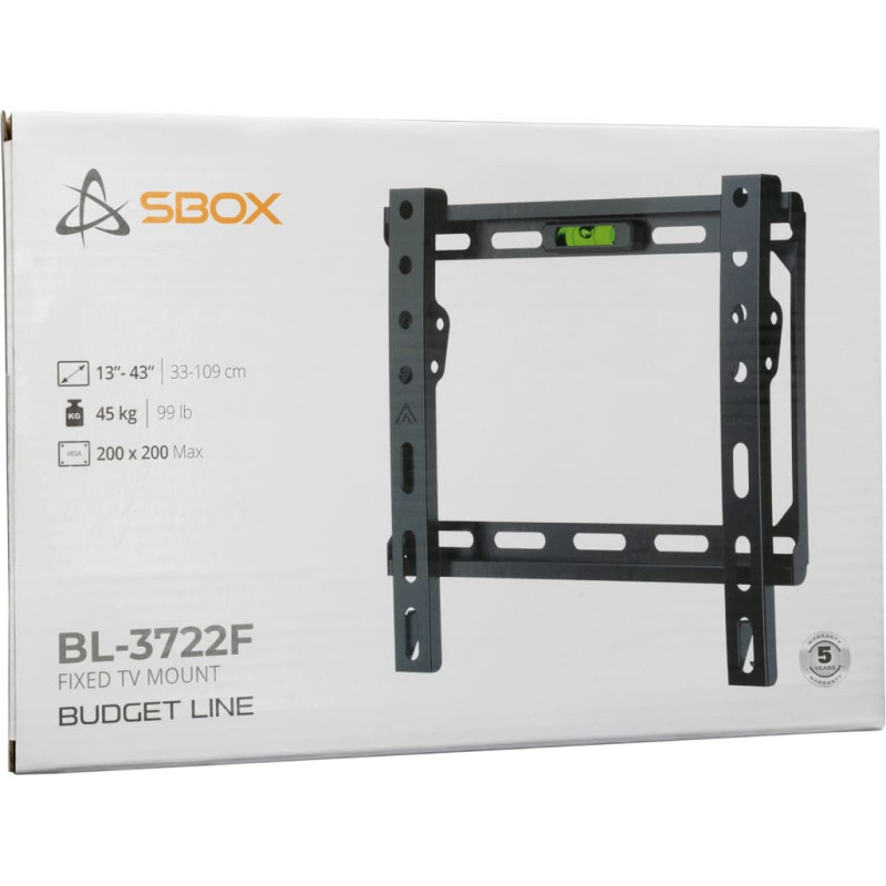 Nostipriniet savu televizoru ar SBOX BL-3722F fiksēto sienas stiprinājumu, kas paredzēts ekrāniem no 13" līdz 43". Ar izturīgu tērauda konstrukciju un plānu 22 mm profilu tas nodrošina gludu, vietu taupošu risinājumu. Atbalstot VESA no 50x50 līdz 200x200 un līdz 45kg, tas nodrošina stabilu un uzticamu uzstādīšanu. Viegli uzstādāms ar noņemamu VESA plāksni.