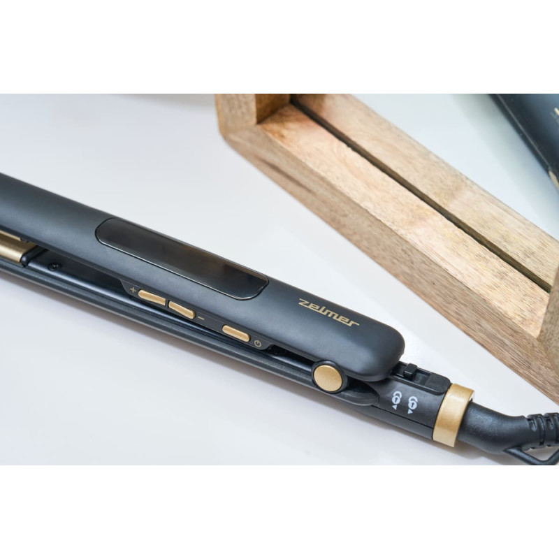 Jauda: 60 W Digitālā temperatūras kontrole Temperatūras diapazons: 150 – 230°C Digitālais displejs Peldošās plāksnes, kas pārklātas ar nano keramiku, 12 x 2,5 cm Matu taisnošanai un lokošanai Ātra uzsildīšana mazāk nekā 30 sekundēs Automātiska izslēgšanās pēc 60 minūtēm Karstumizturīgs uzglabāšanas maciņš Ergonomisks un stilīgs dizains
