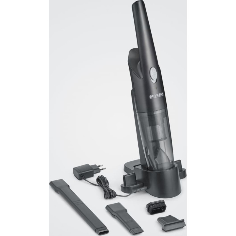 Uzlādējams rokas putekļsūcējs Darbības laiks līdz 25 minūtēm Viegli tīrāmi filtri Motora jauda: 65 W Dažādi uzgaļi Uzlādes stacija