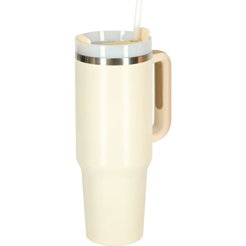 -Krāsa: krēma, balta, sudraba - Krūzītes materiāls: nerūsējošais tērauds + plastmasa - Salmiņa materiāls: plastmasa - Ietilpība: 1,2 L Krūzītes izmēri: - Kopējais augstums: 27 cm - Apakšējās (šaurākās) daļas augstums: 9 cm - Apakšējās (šaurākās) daļas diametrs: 7,5 - 8,5 cm - Augšējās (platākās) daļas diametrs: 10 cm - Platums, ieskaitot rokturi: 15 cm - Salmiņa garums: 1 5 cm: 30 cm - Krūzītes svars ar salmiņu: 0,55 kg - Krūzītes svars, ieskaitot kartona kārbu: 0,55 kg - Krūzītes svars, ieskaitot iepakojumu: 0,55 kg - Krūzītes garums (ar stīpiņu): 1,5 cm: 0,65 kg - Iepakojums: balta ražotāja kartona kārba ar izmēriem: Iepakojuma izmēri: 29 x 14 x 10,5 cm
