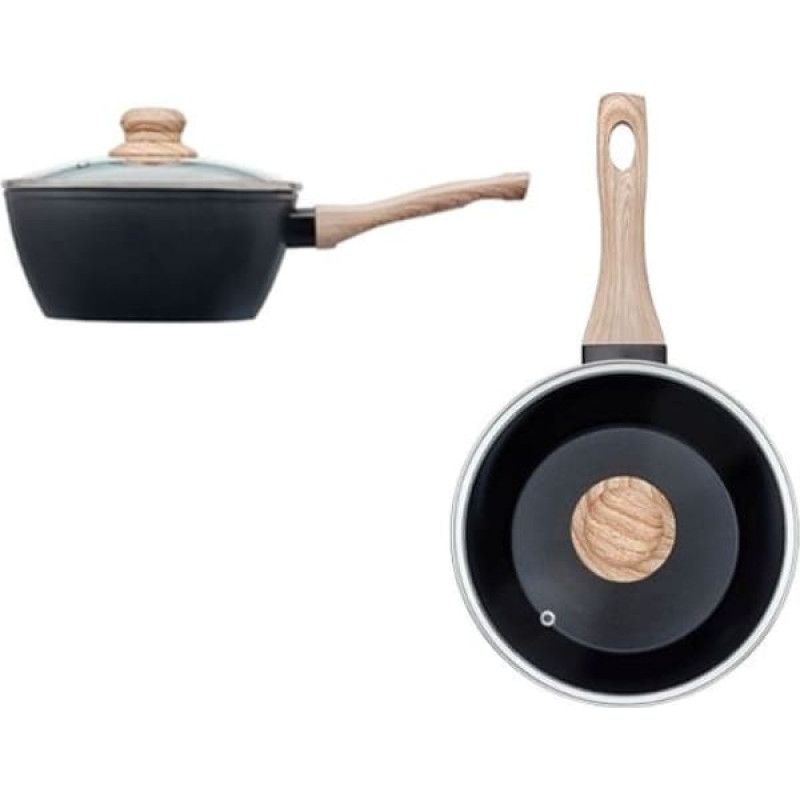 Bakelīta rokturis ar koka efektu. Keramikas non-stick pārklājums veselīgāks gatavošanai, ilgāk kalpo. Der visu veidu plītīm, ieskaitot indukcijas.