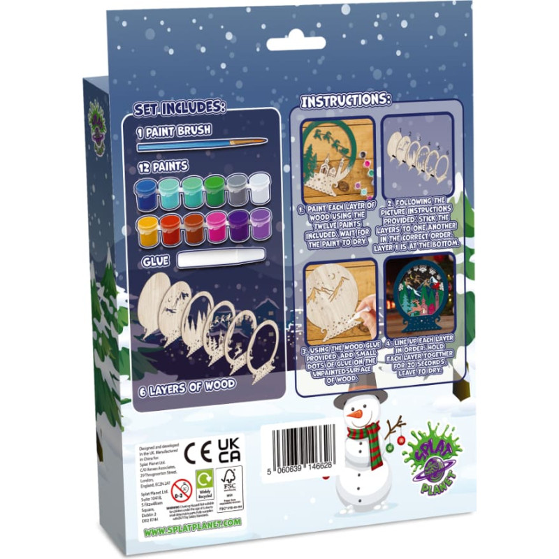 Splat Planet koka 3D krāsojamais attēls, Ziemassvētku sniega globuss