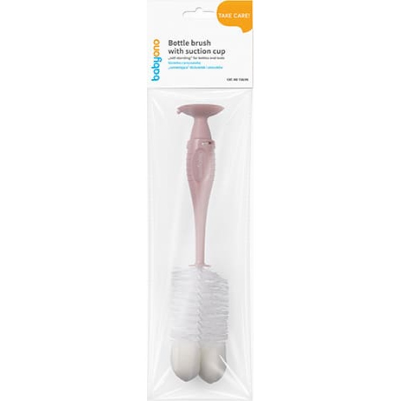Babyono 728/06 BOTTLE AND PACIFIER BRUSH WITH SUCTION CUP PINK