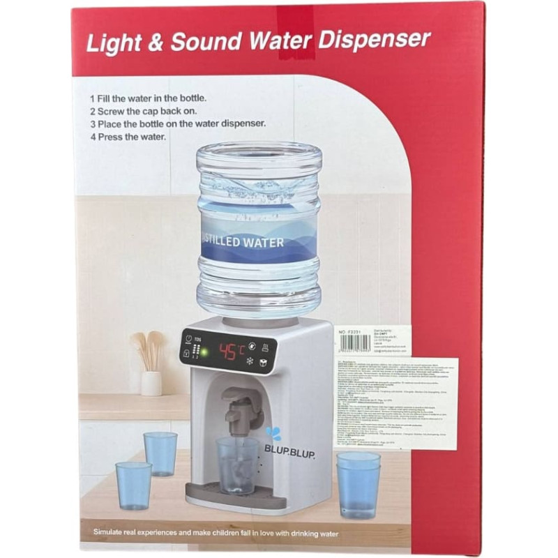 Ierīce izdod raksturīgas skaņas kā īsts ūdens padeves aparāts, tai ir gaismas efekti un slēdzis aktivizēšanai, padarot rotaļu laiku ļoti saistošu.