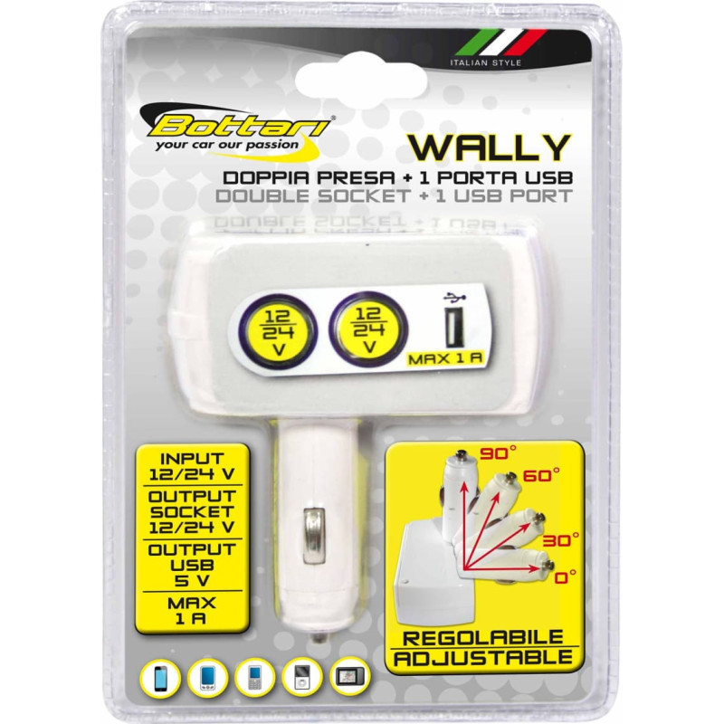 • 12/24V auto dubultā piepīpēšanas ligzda un 1USB ports "WALLY",
