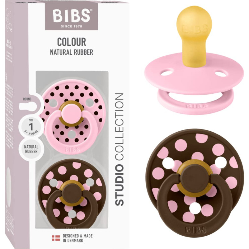 Bibs Collection Colour Round – apaļie mānekļi Polka Dots Baby Pink / Mocha 0-6m 2pcs