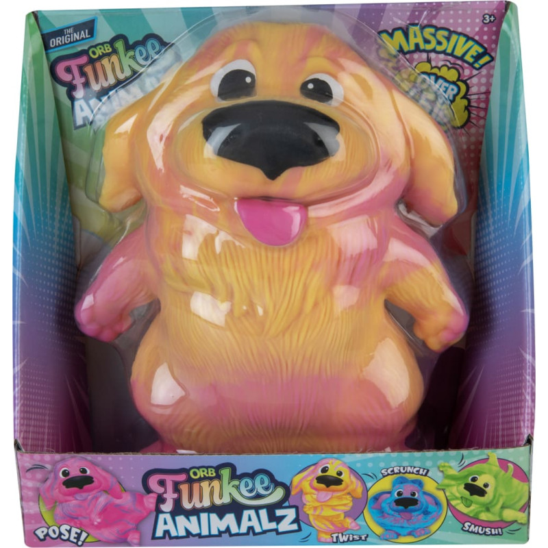 Iemīliet savu jauno labāko draugu – ORB Funkee Animalz Jumbo suni! Šis apburošais Funkee Jumbo suns ar mīlīgajām, garajām ausīm un lielām kucēna acīm ir lielisks papildinājums ORB Funkee Monkee/Funkee Animalz kolekcijai! Šis izcili lielas Jumbo suns sver 2 kilogramus, un tam ir divos toņos batikots krāsojums, kas katru Funkee suni padara unikālu. Savērpiet, veidojiet, spaidiet un izvietojiet suni dažādās pozās atbilstoši savam noskaņojumam! Izveidojiet smieklīgas izteiksmes, lai sasmīdinātu draugus! Saspiediet un pēc tam atgrieziet sākotnējā formā! Tā ir vislabākā rotaļlieta stresa mazināšanai! Iespējas ir bezgalīgas! Šie super staipāmie, izcili populārie Jumbo suņi ir aktuālākā tendence TikTok un Instagram, kas šobrīd sasniedz 6 miljardus skatījumu, tāpēc izveidojiet īpašu Funkee suņa pozu un dalieties ar to. Neatvairāmi mīkstais un pufīgais suns Jumbo Funkee Dog būs fantastisks labākais draugs vai jauka dāvana ikvienam – gan bērniem, gan pieaugušajiem. Tiklīdz paņemsiet rokās šo rotaļlietu, vairs negribēsiet to nolikt malā! Jumbo Funkee suņa virsma ir no īpaši pielāgotas, izturīgas termoplastiskās gumijas, rotaļlieta ir pildīta ar speciāli izstrādātu silikagelu, kas paredzēts pozas noturēšanai. Tas padara šo suni super izturīgu. Turklāt to var mazgāt nebeidzamai jautrībai! Pievienojieties aktuālajai tendencei ar oriģinālo Jumbo Funkee suni!