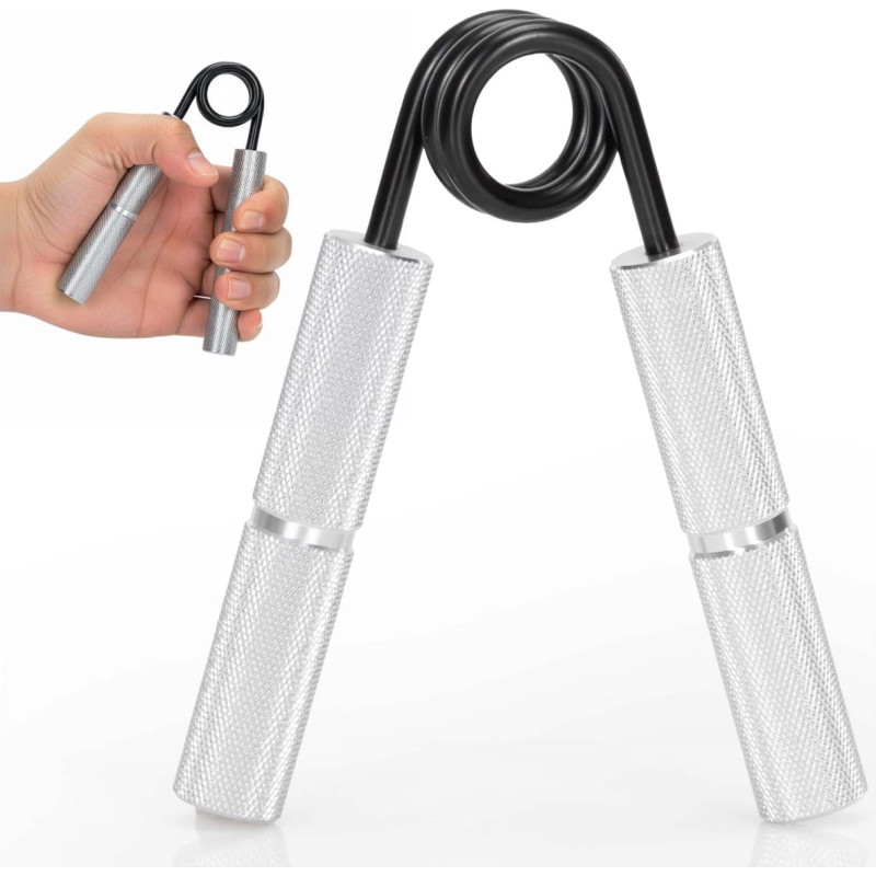Zīmols: Actiget® Krāsa: sudraba, melna Materiāls: tērauds, alumīnijs Pretestība: 68 kg Izmēri: Kopējais augstums: 13 cm Kopējais platums: 10,5 cm Iekšējais attālums starp rokturiem miera stāvoklī: 7,5 cm Roktura garums: 9,5 cm Roktura diametrs: 18 mm Atsperes diametrs: 34 mm Tērauda stieņa biezums: 5 mm Papildu informācija: Alumīnija rokturiem ir neslīdošs pārklājums Pretestības marķējums atrodas rokturu galos Tērauda atspere pārklāta ar pretkorozijas slāni Produktam ir Actiget® logotips