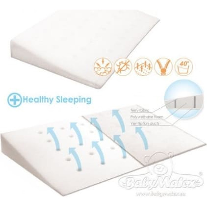 Spilvens paredzēts bērniem ar gremošanas traucējumiem miega laikā. Spilvenam ir vertikāla ventilācija, kas samazina bērna svīšanu. Spilvena pildījums - poliuretāna putas, patīkamas bērnu ādai. Spilvendrāna ir izgatavota no kokvilnas un poliestera. Kokvilna piešķir tai maigumu, savukārt poliesters padara materiālu elastīgu. Turklāt pārvalku var noņemt un mazgāt.