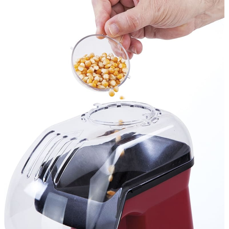 Popkorns bez eļļas 3 minūtēs. 60 g. kukurūzas ietilpība. Ieslēgšanas / izslēgšanas slēdzis. Pretslīdoša pamatne. Dozators. Viegla tīrīšana. Spriegums 230 V. Jauda 1.200 W. Produkta izmēri: 13,5 x 23 x 30,5 cm; Produkta svars: 1,04 kg