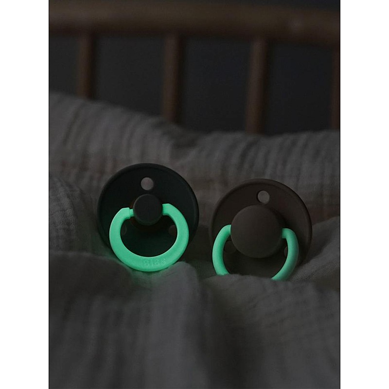 BIBS Colour Round GLOW Mānekļi no dabiskā kaučuka Vanilla Glow / Dark Oak Glow 6-18m 2pcs (spīd tumsā)