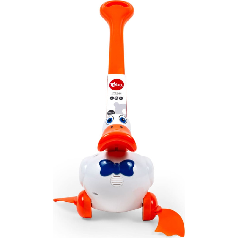 Iepazīstinām ar šo lielisko rotaļlietu. Klasiskā stumjamā rotaļlieta maziem zēniem un meitenēm —Stumjamā pīle – Waddles! Šis apburošais draudziņš ienesīs nebeidzamu prieku jūsu mazuļa rotaļu piedzīvojumos. Čāpojošā pīlīte ir brīnums bez baterijām! Kad jūsu mazulis sper pirmos solīšus, vērojiet, kā pīlīte čāpo un pēkšķ ar katru kustību. Vienkāršs, taču valdzinošs — ideāls rotaļu biedrs maziem bērniem. Izstrādāts, domājot par mazajām rociņām, tāpēc viegli satveramais atvieglo pīlītes stumšanu. Šī stumjamā rotaļlieta ne tikai sagādā prieku, bet arī palīdz stiprināt motoriskās prasmes, vienlaikus iepazīstina mazuli ar cēloņu un seku jēdzienu. Pīlīti ir viegli salikt mazāk nekā 1 minūtē. Rokturi var salikt bez piepūles, un nav nepieciešami nekādi instrumenti. Novērtējiet ātro un ērto salikšanu, izklaidēm atrodoties ceļā. Čāpojošā pīlīte ir paredzēta maziem bērniem vecumā no 18 mēnešiem.