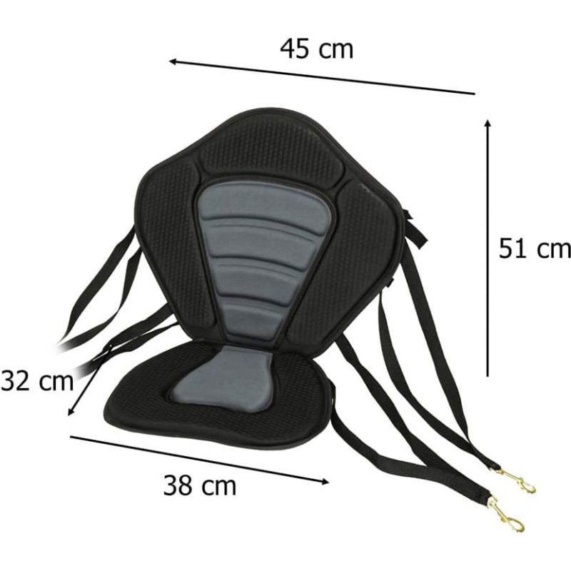 Izstrādāts, domājot par komfortu un funkcionalitāti, tas lieliski noderēs pat garās un ekstrēmās ūdens ekspedīcijās. Tam ir regulējamas siksnas, kas tiek izmantotas sēdekļa piestiprināšanai pie kajaka vai dēļa. Turklāt atzveltnes aizmugurē ir soma, kurā var ērti iepakot tādas lietas kā tālrunis vai atslēgas.